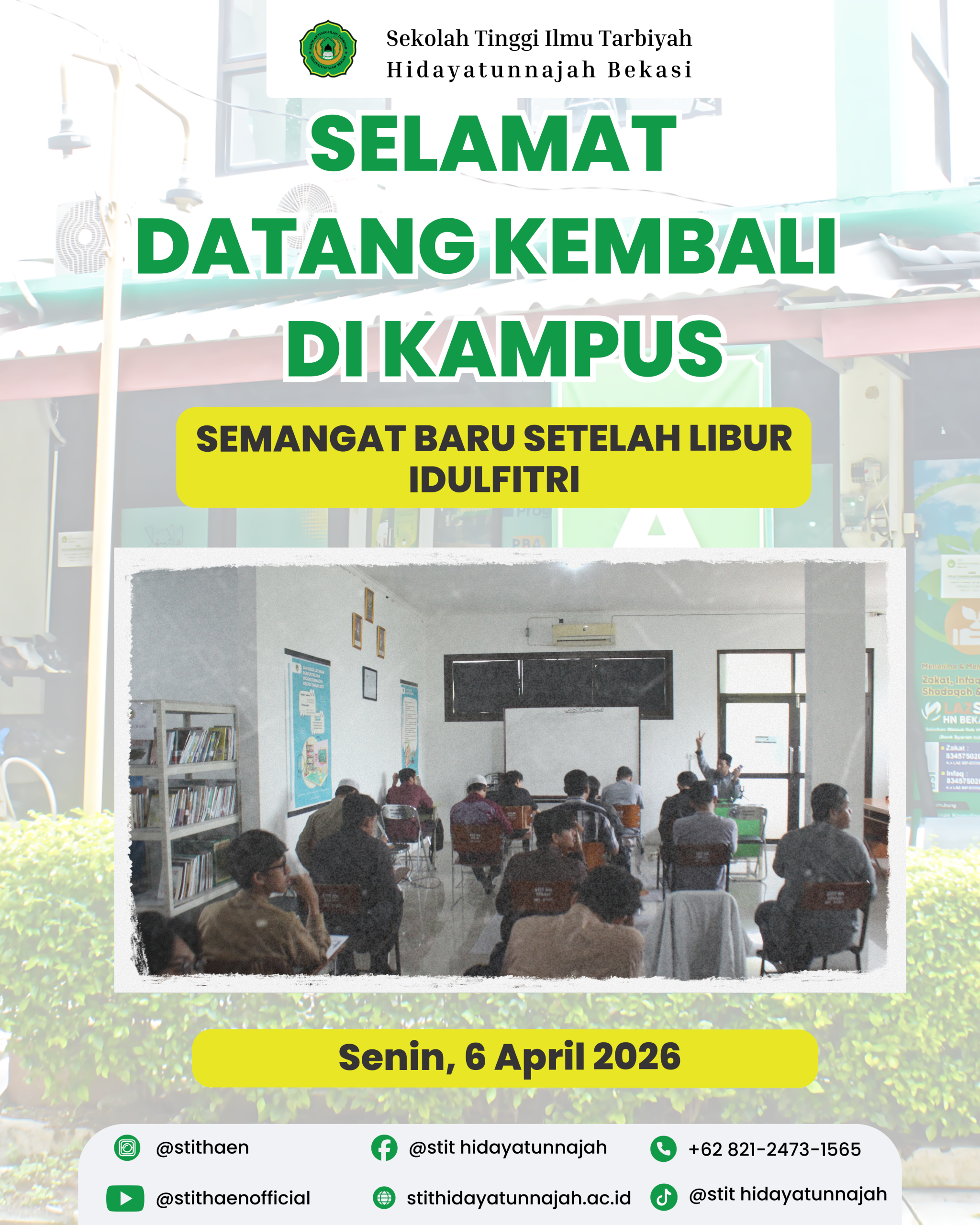 Mari belajar bersama kami di STIT HIDAYATUNNAJAH BEKASI Kampus bersyari', lingkungan islami, pembina akhlak & kompetensi.