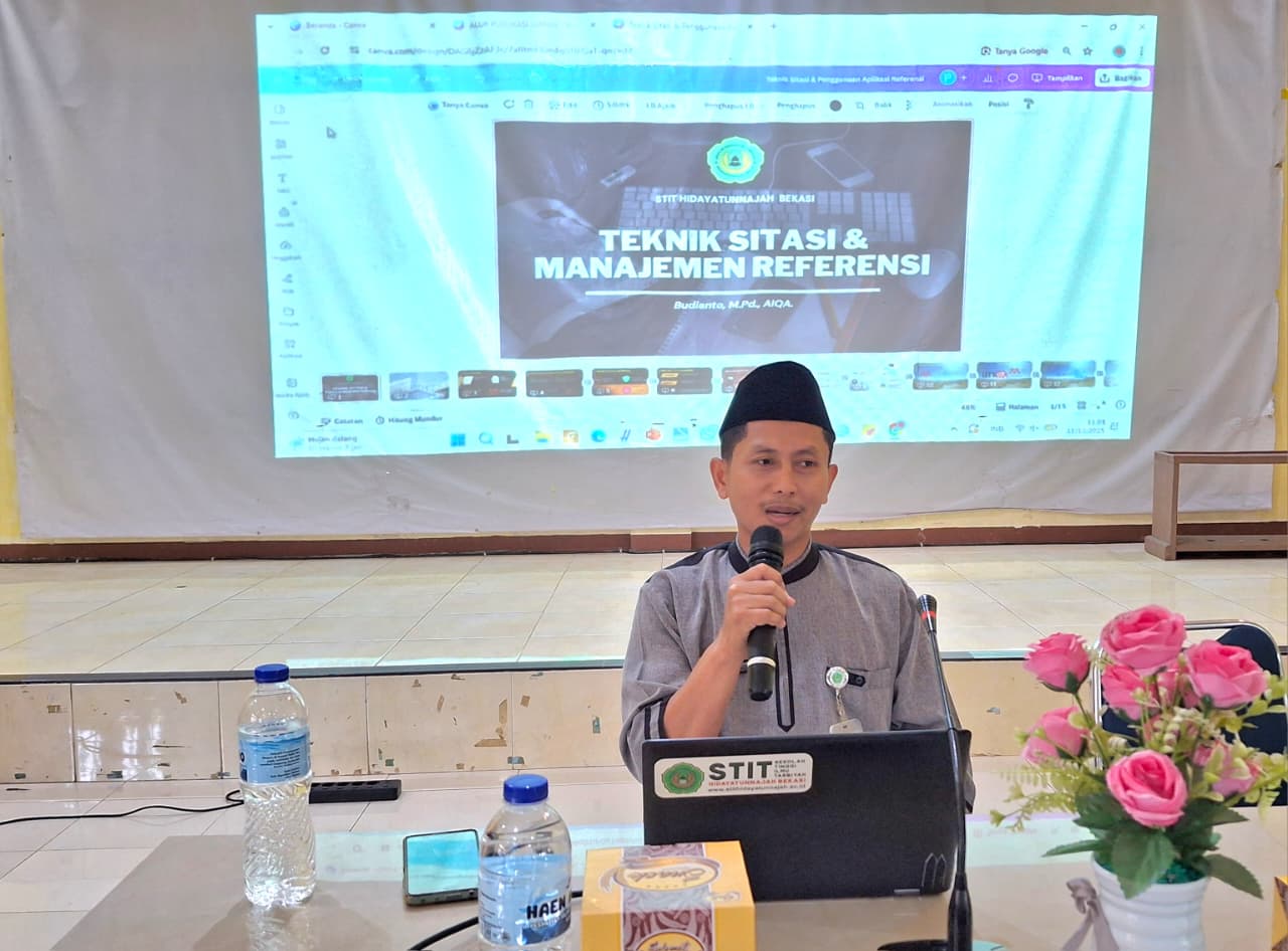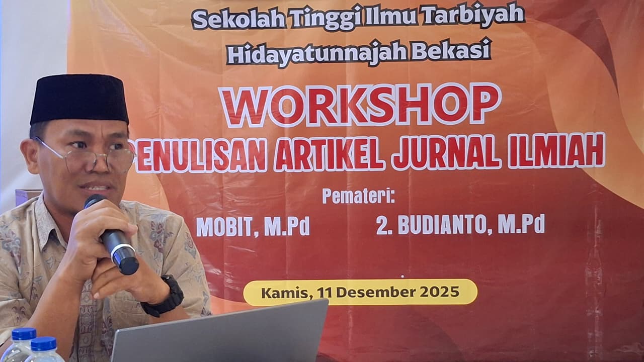 Pada Acara Workshop Penulisan Jurnal Artikel Ilmiah bagi mahasiswa STIT Hidayatunnajah Bekasi dengan pemateri Budianto, M.Pd dan Mobit, M.Pd