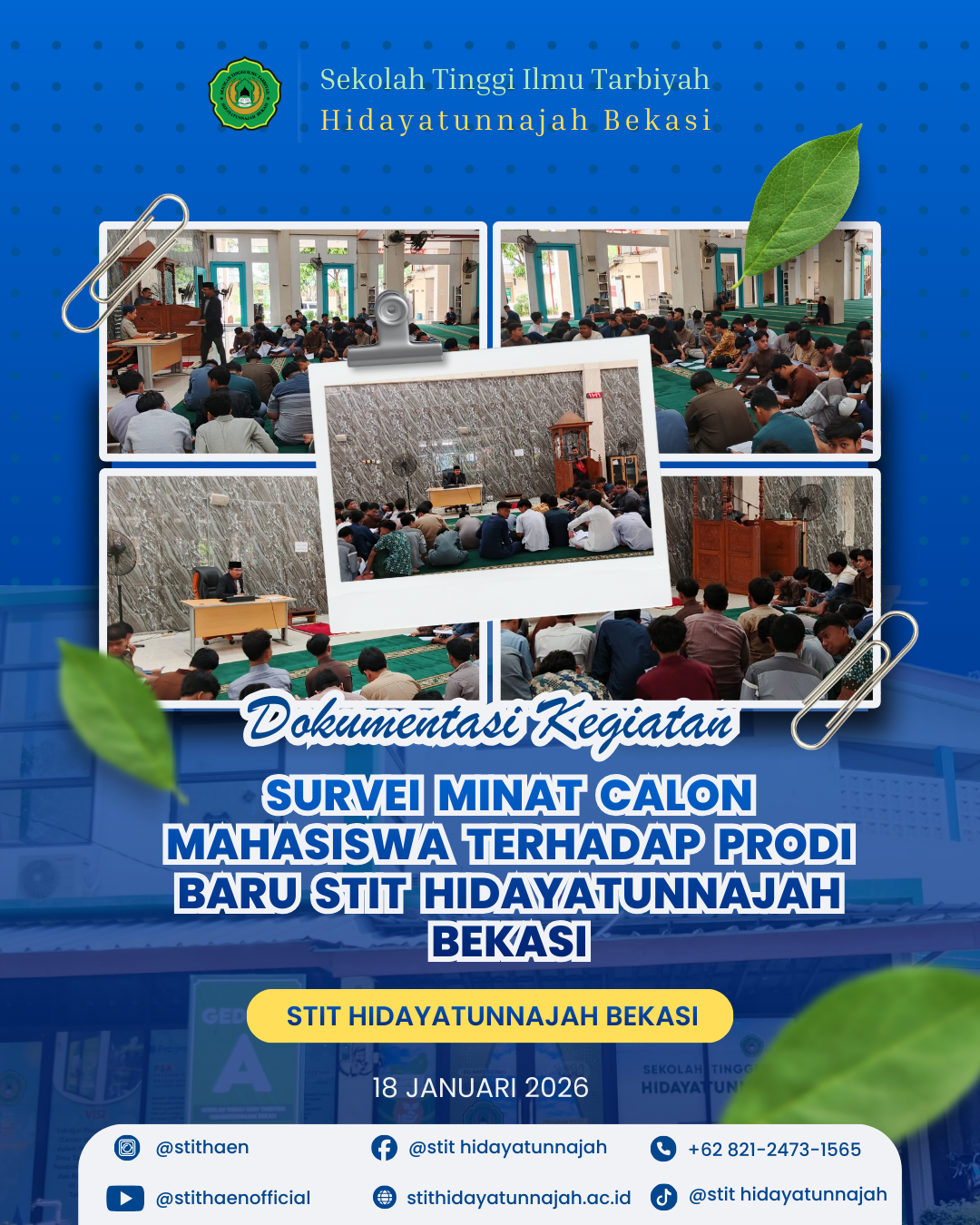 STIT Hidayatunnajah Bekasi melaksanakan kegiatan Survei Minat Calon Mahasiswa terhadap Program Studi Baru pada Sabtu, 18 Januari 2026. Kegiatan ini merupakan bagian dari komitmen institusi dalam pengembangan akademik serta peningkatan