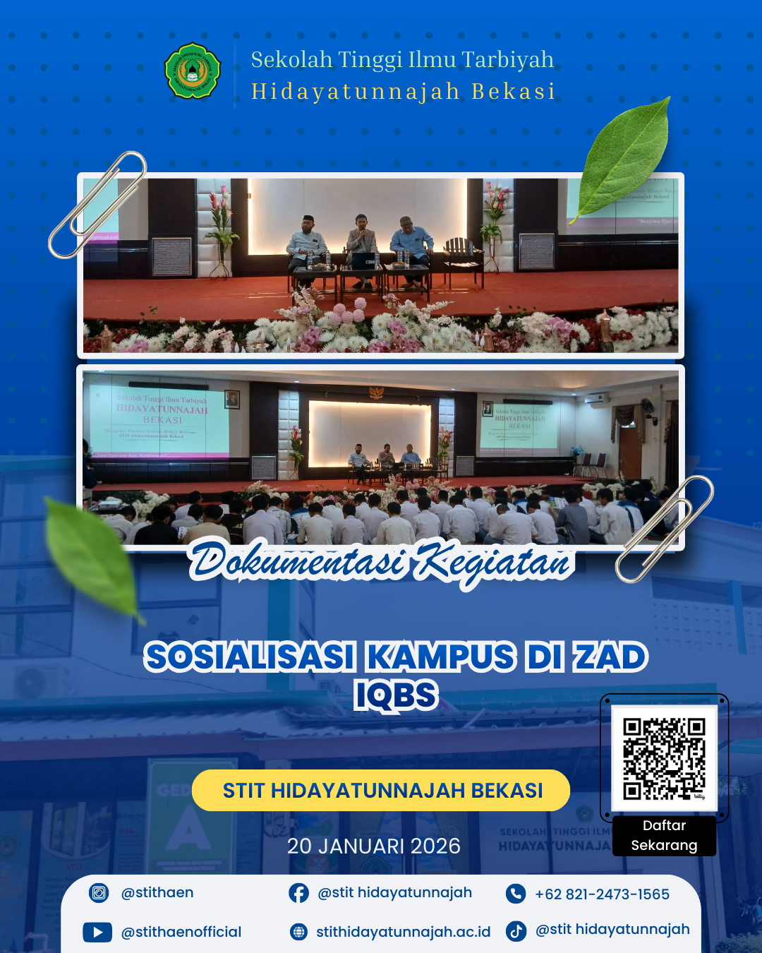STIT Hidayatunnajah Bekasi melaksanakan kegiatan Sosialisasi Kampus di ZAD IQBS pada Selasa, 20 Januari 2026. Kegiatan ini bertujuan untuk memberikan informasi dan pemahaman kepada para siswa mengenai dunia