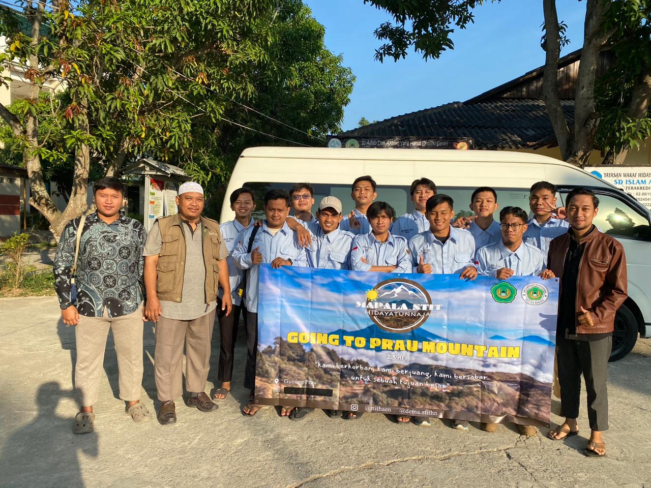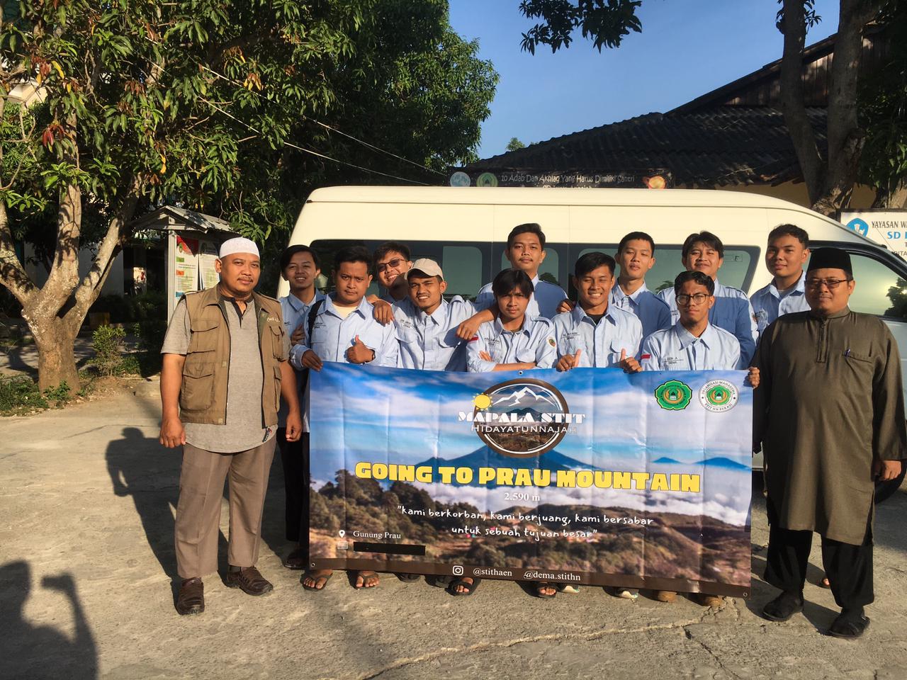 Pagi ini, Kamis tanggal 2 Muharram 1445 H/20 Juli 2023 para mahasiswa Mapala STIT Hidayatunnajah Bekasi (STITHN) antusias mengikuti pelepasan ekspedisi mendaki Gunung Prau, propinsi Jawa Tengah. Sebelum keberangkatan tim ekspedisi, mereka diberi wejangan oleh Waket III Bidang Kemahasiswaan dan Kerjasama, Muslim. M.Pd. di lapangan basket, lingkungan kampus STITHN. Selain itu, Waket II Bidang Keuangan dan Administrasi Umum, Danang Dwi Basuki, M.Pd. turut menyertai mereka. Kak Cepi Ketua Sema STITHN pun turut menghadiri pelepasan tersebut.