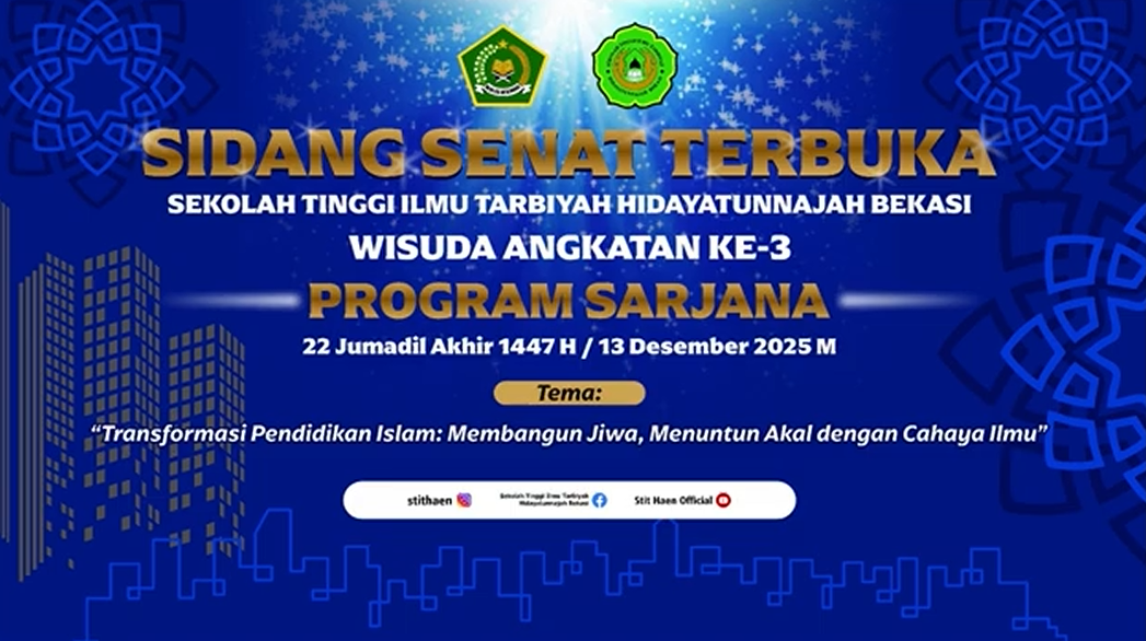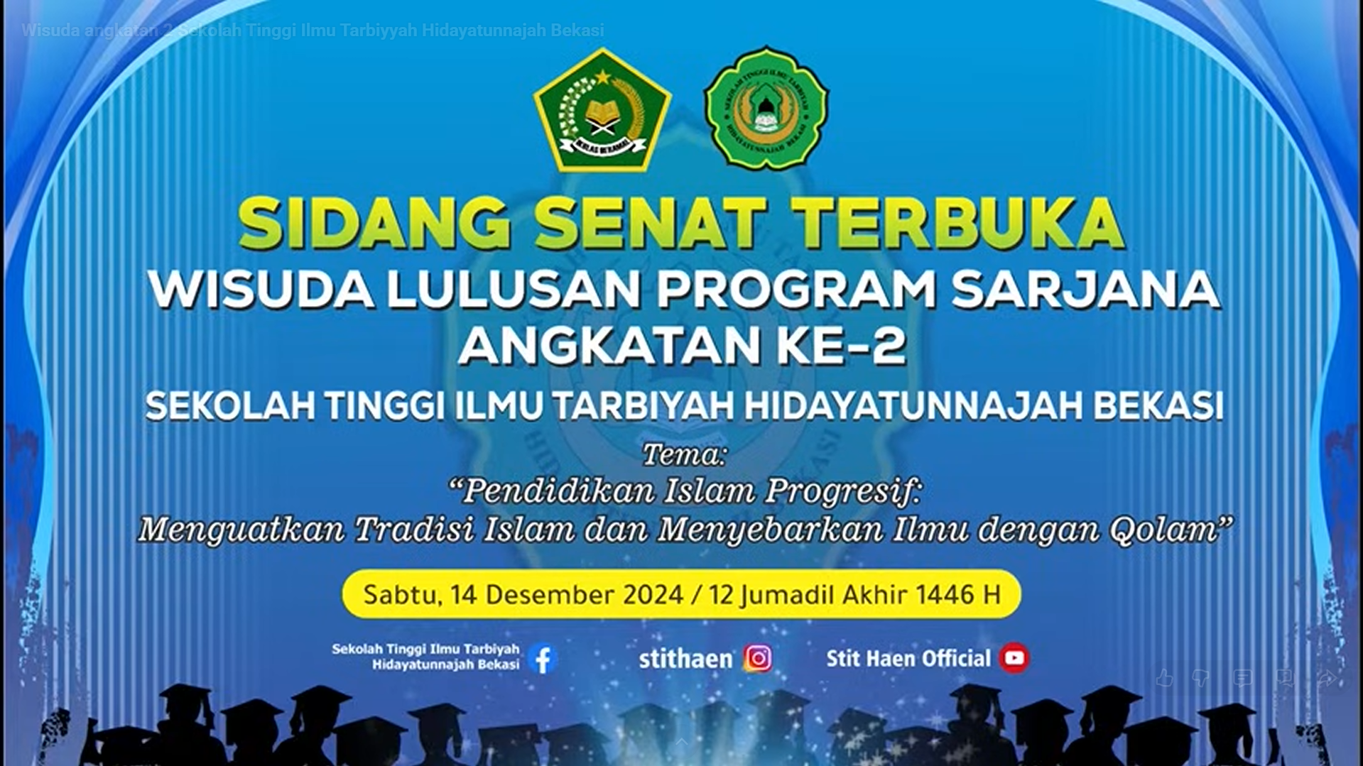Video Kegiatan KampusChannel STIT 5 Videos Wisuda angkatan 1 Sekolah Tinggi Ilmu Tarbiyyah Hidayatunnajah Bekasi 2:55:28 Kajian Sekolah Islam Dengan Kurikulum Wasatiah 2:55:28 Wisuda angkatan 1 Sekolah Tinggi Ilmu Tarbiyyah Hidayatunnajah Bekasi Membangun Tradisi Akademik Islami II Dr. Abdullah Roy, M.A Sidang Senat Terbuka STIT Hidayatunnajah Bekasi Wisuda Angkatan 3